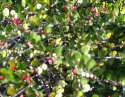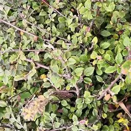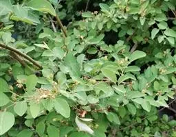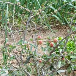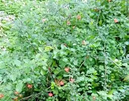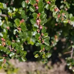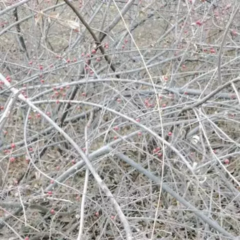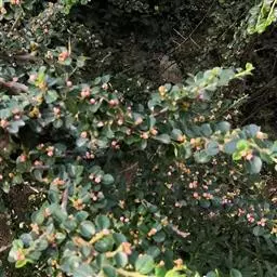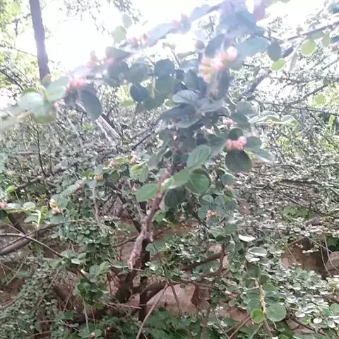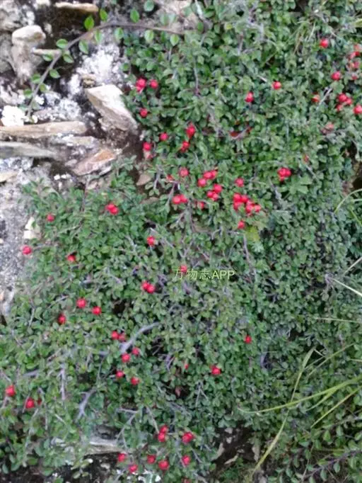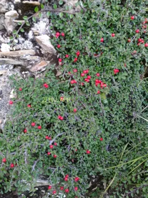 匍匐栒子 匍匐栒子是落叶匍匐灌木,茎不规则分枝,平铺地上;小枝细瘦,圆柱形,幼嫩时具糙伏毛,逐渐脱落,红褐色至暗灰色。叶片宽卵形或倒卵形,稀椭圆形,长5-15毫米,宽4-10毫米,先端圆钝或稍急尖,基部楔形,边缘全缘而呈波状,上面无毛,下面具稀疏短柔毛或无毛;叶柄长1-2毫米,无毛;托叶钻形,成长时脱落。