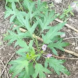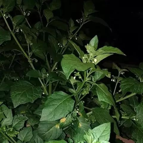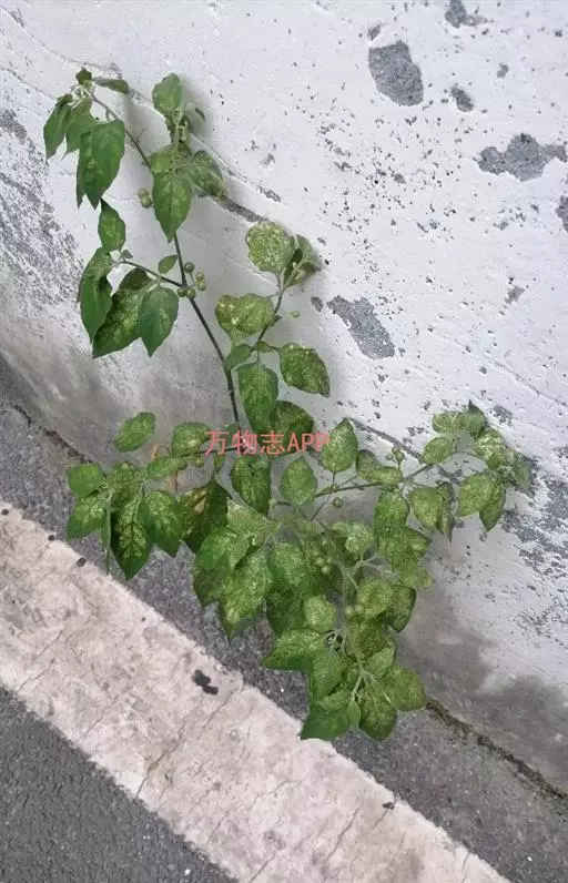 龙葵(学名:Solanum nigrum L. ):一年生草本植物,全草高30-120厘米;茎直立,多分枝;卵形或心型叶子互生,近全缘;夏季开白色小花,4-10朵成聚伞花序;球形浆果,成熟后为黑紫色。浆果和叶子均可食用,但叶子含有大量生物碱,须经煮熟后方可解毒。全株入药,可散瘀消肿,清热解毒。