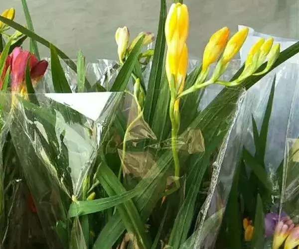 商品切花花枝长度要求过55厘米以上。若切花花序小,花茎过短影响商品质量时,在采切主花枝时可连同侧枝一起剪下后再剪除侧花枝。剪切后的切花,分品种按花枝质量分级捆扎,每10支或20支一扎,花朵部分用纸包裹,放入保鲜液或清水中吸水。在1~2℃温度与90%相对湿度下干贮或湿贮可保鲜7天;外运用纸箱包装。每箱300~500支。最后一次切花剪切至少保留2叶,以利地下部分球茎发育,一般在叶发黄后收球。