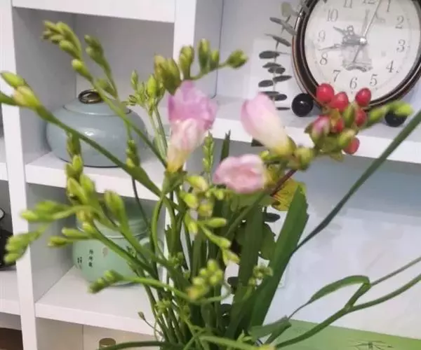 香雪兰根系形成和花芽分化都需要较冷凉的环境,根系在15~18℃的条件下生长最好,花芽分化则在12 ~1 5 ℃时最佳,花序的生长以18~20℃最快。故栽种初期保持室温15~18℃;5~7 片叶期,以12~1 5 ℃进行花原基诱导,保持此温度4~6周,花序发育就不会逆转;然后升温至16~17℃,使花序迅速伸长,进入花期。
