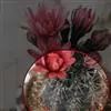 用香雪兰、红色蝴蝶兰为主题花 ,配以玉兰、文竹、丝石竹、龙游柳枝、装饰居室,素雅端庄。香雪兰花似百合,叶若兰蕙,花色素雅,玲珑清秀,香气浓郁,开花期长,是人们喜爱的冬季花卉。