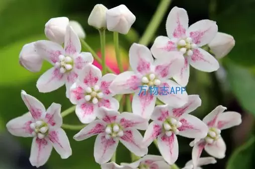 攀援灌木,全株具乳汁,除花冠和合蕊柱外,全株均被小茸毛,老茎被毛渐脱落。叶纸质,卵圆形,长1.3-3厘米,宽0.9-2.5厘米,基部心形,叶面被短柔毛,叶背被淡黄色的微茸毛,老渐脱落;侧脉每边约4条,在叶背凸起;叶柄长0.5-2.5厘米,顶端具3-4个丛生小腺体。伞形状聚伞花序腋生,长达5厘米,着花达15朵;花萼裂片卵圆形,花萼内面基部具5个小腺体;花冠白色,辐状,裂片卵圆形,长5毫米,宽3.5毫米,顶端钝而微凹,具脉纹,边缘被缘毛;副花冠裂片肉质,背面圆球状凸起,顶端内角延伸成尖角,与花药顶端的膜片近等高;花粉块长圆状,直立;子房被疏柔毛,花柱短圆柱状,柱头圆锥状,基部五角形,顶端短2裂。蓇葖披针形,长3.5-5厘米,直径5-7毫米,外果皮被微毛,老渐脱落,平滑无皱褶;种子卵圆形,长7毫米,宽4毫米,顶端具白色绢质种毛;种毛长2厘米。花期4-8月,果期10月。