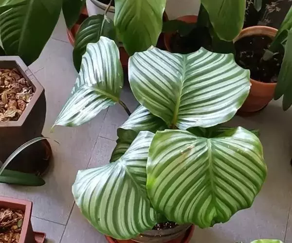 苹果竹芋(English Common Name),学名Calathea orbifolia,竹芋科消竹芋属植物,园艺 种,原种产美洲热带地区。