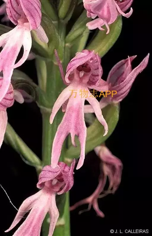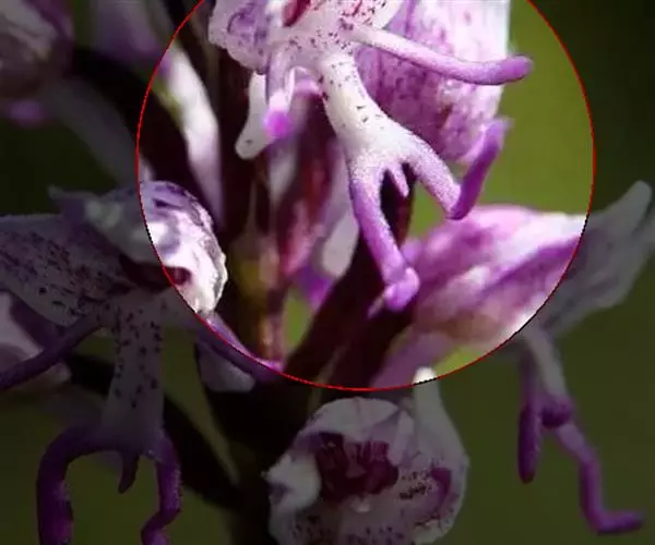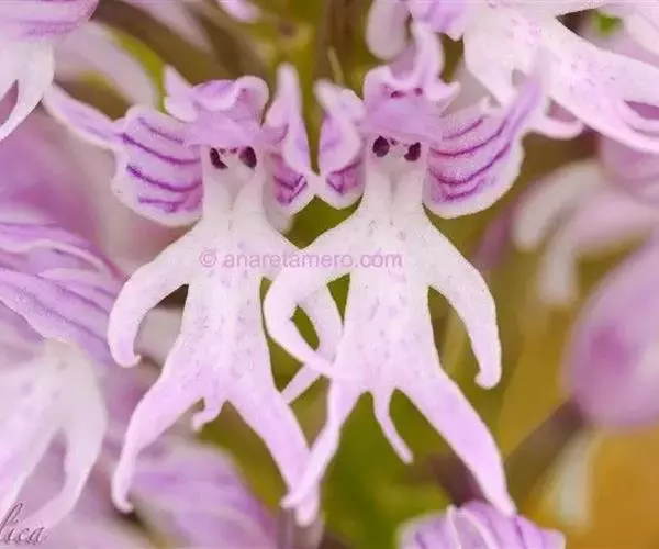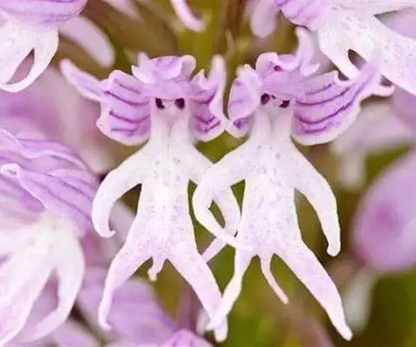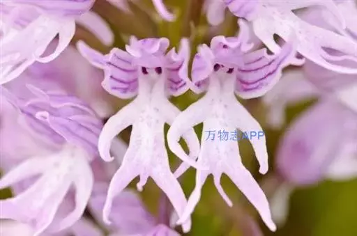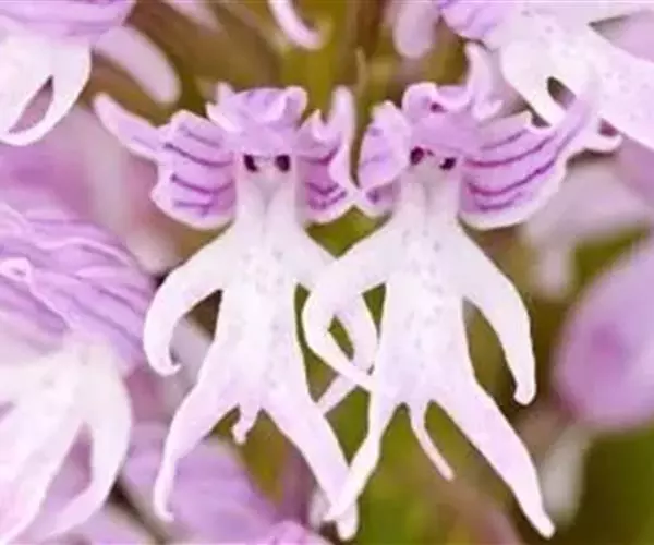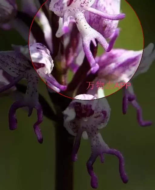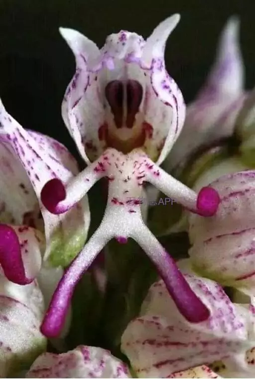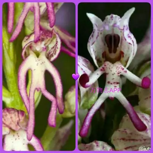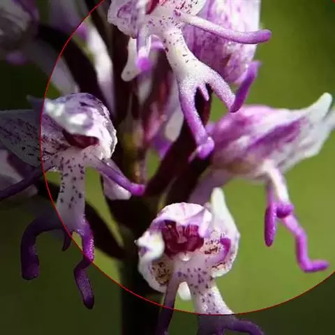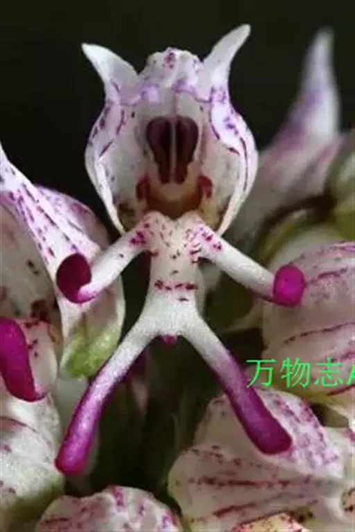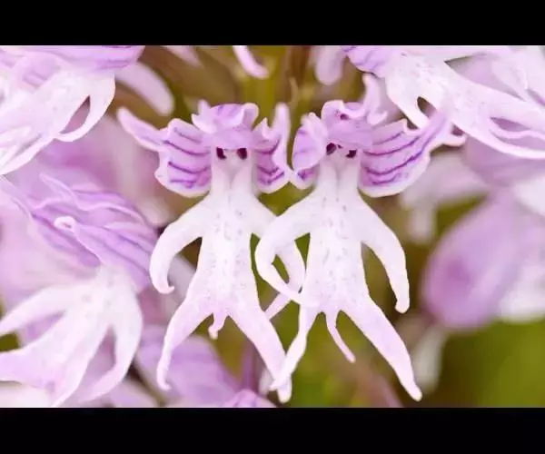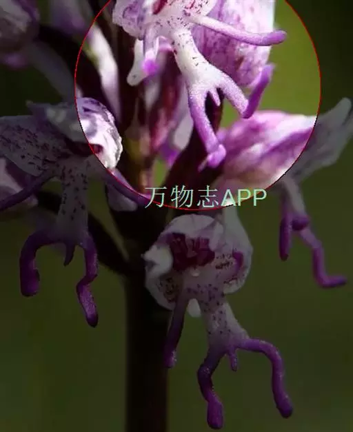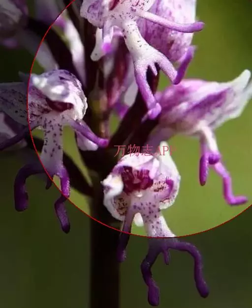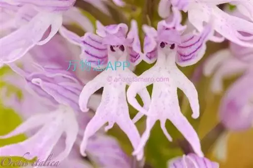 意大利红门兰,拉丁学名叫“Orchis italica”,整朵花的造型就像一个戴着草帽的裸体男人。因外观呈人形,英语里又称“Italian man orchid”,即“意大利男人兰”,或者“pyra-mid monkey orchid”,即“金字塔猴子兰”。此外,它还有一个源自古希腊文的名字为“睾丸兰”。