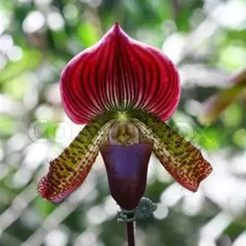 大花杓兰因其形状酷似一个口小肚大的囊袋,又名“大口袋兰”。花体呈紫红色,花朵直径5厘米至6厘米,…