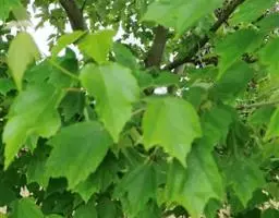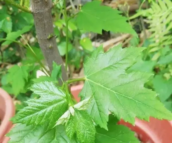 落叶乔木,通常高8-10米,稀达15米。树皮粗糙,灰褐色或深褐色,常裂成薄片脱落。小枝细瘦,当年生枝紫色或紫褐色,常有黄色短柔毛,多年生枝褐色或深褐色,无毛或近于无毛。冬芽短圆锥形;外部的2枚鳞片深紫色,有黄色短柔毛,内部的2枚苞片有褐色短柔毛。叶膜质或纸质,基部截形或近于心脏形,外貌近于圆形,长10-12厘米,宽7-9厘米,常5裂,稀7裂;裂片阔卵形稀三角卵形,先端锐尖,边缘有粗锯齿,裂片间的凹缺锐尖,深达叶片全长的2/5;上面深绿色,近于无毛,下面淡绿色或黄绿色,密被淡黄鱼丝越立在叶脉上更密;主脉5条,在上面显著,在下面凸起,侧脉11-13对,蓬蕊薇,显著,在下面显著,小叶脉在上面不显著,在下面显著,叶柄长5-8厘米,微有短柔毛或无毛。