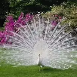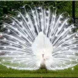 白孔雀,脊椎动物,鸟纲,雉科。其全身洁白无瑕,羽毛无杂色,…