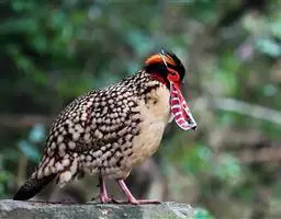 又名鸬雉 、黑鸡,中型鸟类,全长约48cm。雄鸟头顶和后颈及颈侧均紫黑。头上具有稍形直立的同色羽冠。背部蓝黑,下体大都黑褐,胸羽为披针状,除羽基外,呈白色而沾灰。脸部赤红。嘴黄褐,分布范围:喜马拉雅山脉、印度北部、缅甸北部及西部。在中国相当罕见,仅分布于海拔2100~3200米的亚热带森林。