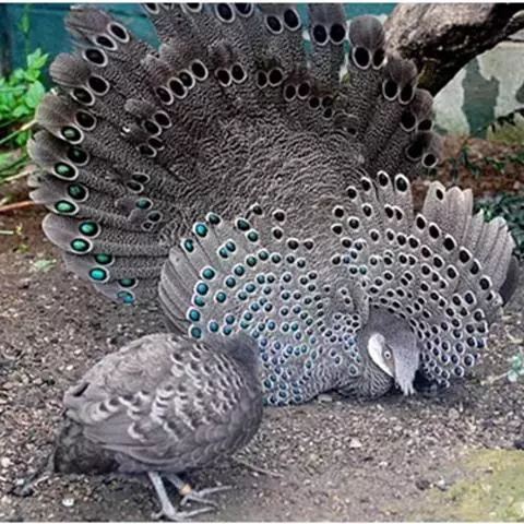 灰孔雀雉:雄鸟体长50-67厘米,体重456-710克;雌鸟体长33-52厘米,体重460-500克。…