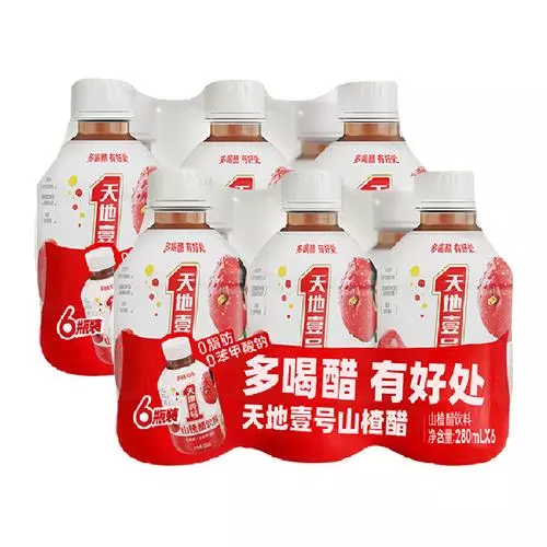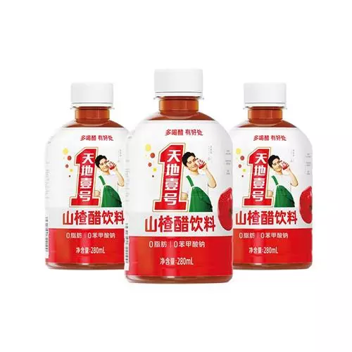 天地壹号推出的山楂醋饮料,口感酸甜,有助于开胃消食。