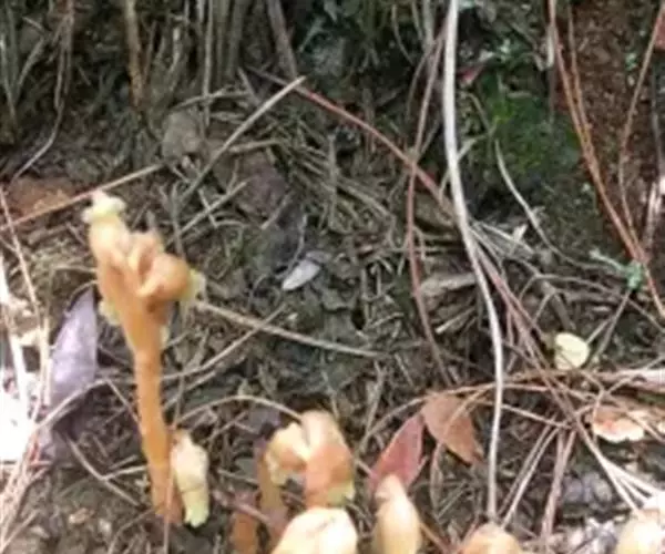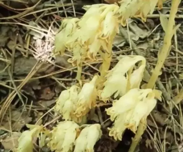 松下兰(学名:Monotropa hypopitys Linn. )是鹿蹄草科植物水晶兰属多年生草本植物,不分枝,高10-30厘米,全株无叶绿素,白色,肉质,干后变黑褐色。松下兰自身不进行光合作用,而是靠腐烂的植物来获得养分。