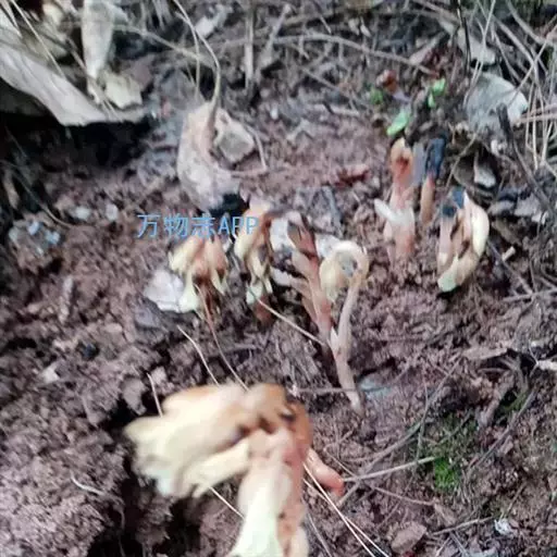 多年生草本,腐生,高8-27厘米,全株无叶绿素,白色或淡黄色,肉质,干后变黑褐色。根细而分枝密。叶鳞片状,直立,互生,上部较稀疏,下部较紧密,卵状长圆形或卵状披针形,长1-1.5厘米,宽0.5-0.7厘米,先端钝头,边缘近全缘,上部的常有不整齐的锯齿。