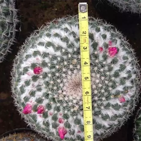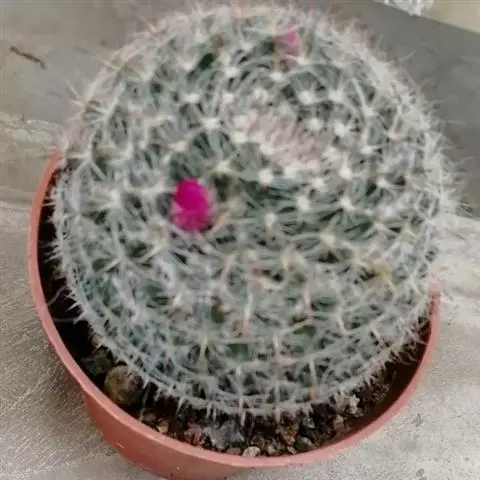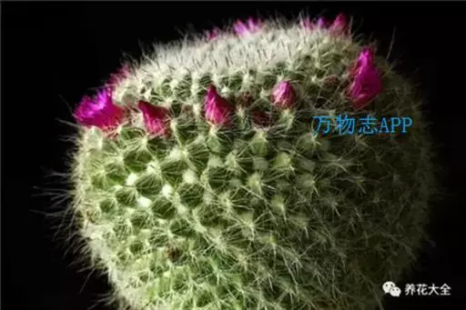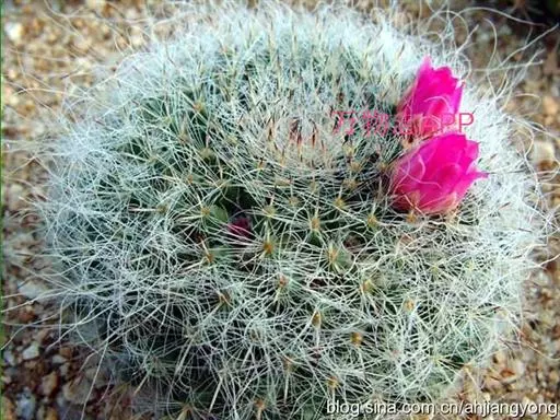 玉翁 玉翁 多年生肉质草本。植株单生,圆球形至椭圆形,体色鲜绿。高度20厘米以下,球径15厘米以下,具13~21个圆锥形的疣状突起,呈螺旋形排列的棱,疣腋间有15~20根3~4厘米长的白毛,新刺座有白色茸毛,白色刚毛状辐射周刺30~35枚,尖端褐色的中刺2~3枚。春季桃红色小型钟状花围绕球成圈开放,花径1~1.5厘米。