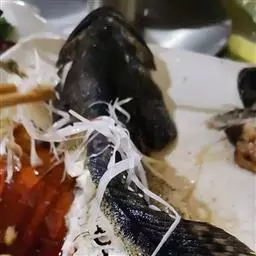 吃法:取适量烤鸭肉片、黄瓜丝、葱丝夹入薄饼皮中,卷成棒状,在其外蘸上甜面酱 。