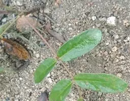 叶具3小叶,长可达14厘米;托叶卵状披针形,急尖,被黄色柔毛。顶生小叶卵圆形或卵状披针形,长3.5-6厘米,宽1.5-2.5厘米,先端锐尖至钝圆,基部近圆形,全缘,两面均被绢状的糙伏毛,侧生小叶斜卵状披针形。