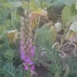 总状花序通常短,稀长可达13厘米;花小,长约5毫米;花梗密生黄色长硬毛;苞片披针形;花萼钟状,密生长毛,裂片5,三角状披针形,先端锐尖;花冠淡红紫色或白色,旗瓣近圆形,先端微凹,基部具短瓣柄,翼瓣斜倒卵形,有明显的耳,龙骨瓣比旗瓣及翼瓣短小,密被长毛;花柱短而向一侧弯曲。
