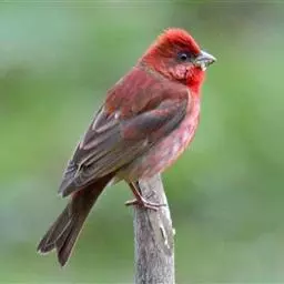 酒红朱雀小型鸟类,体长13~15厘米。雄鸟通体深红色,头部深朱红或棕红色,下背和腰玫瑰红色,…