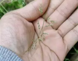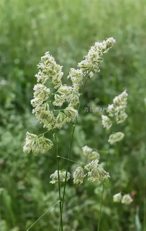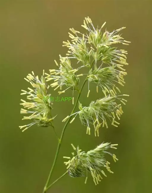 圆锥花序开展,长5-15厘米,分枝单生或基部者稀可孪生,长(3)5-15厘米,伸展或斜向上升,1/2以下裸露,平滑;小穗多聚集于分枝上部,含2-5花,长5-7(9)毫米,绿色或稍带紫色;颖片披针形,先端渐尖,长4-5(6.5)毫米,边缘膜质,中脉稍凸出成脊,脊粗糙或具纤毛;外稃背部粗糙或被微毛,脊具细刺毛或具稍长的纤毛,顶端具长约1毫米的芒,第一外稃近等长于小穗;内稃狭窄,约等长于外稃,具2脊,脊具纤毛;花药长约2.5毫米。花果期5-8月。染色体2n=14(Stebbins,Zohary1959),28(DaviesJ.G.1927),42(Hansen,Hill1953b)。
