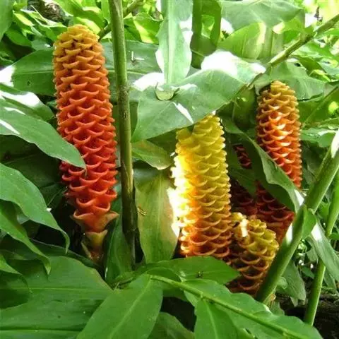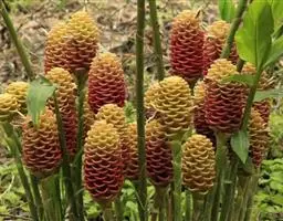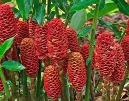珊瑚姜是姜科、姜属植物。株高近1米。叶片长圆状披针形或披针形,长20-30厘米,宽4-6厘米,…