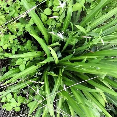 多年生宿根草本。根茎肉质、肥厚、扁平,有芳香和辛辣味。叶子列,披钍形至条状披针形,长15-30厘米,宽约2厘米,先端渐尖基部渐狭,平滑无毛,有抱茎的叶鞘,无柄。