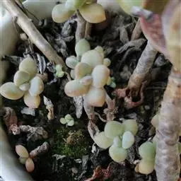 蔓莲植株易生走茎。蔓莲也可以叶插,但扦插走茎和侧芽繁殖相对更快捷,而且成活率很高。可直接剪下走茎或侧芽,晾干伤口,扦插在略带潮气的土壤中即可。干透后少量给水,避免暴晒,一般10-15天左右可长出新根。确认长根后可正常给水。