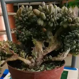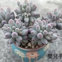 蓝豆是景天科、风车草属的多年生植物,多肉植物。植株叶片覆白粉,呈淡蓝色,…