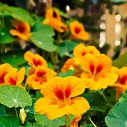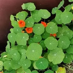 旱金莲是旱金莲科旱金莲属蔓生一年生草本植物。叶互生,叶柄向上扭曲,盾状,叶圆形,具波状浅缺刻,…