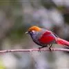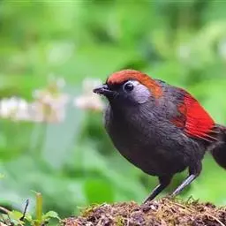 赤尾噪鹛中型鸟类,体长24~28厘米。头顶至后颈红棕色,两翅和尾鲜红色,眼先、眉纹、颊、颏和喉黑色,…