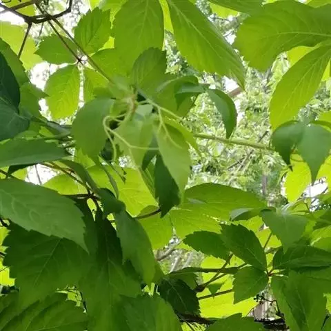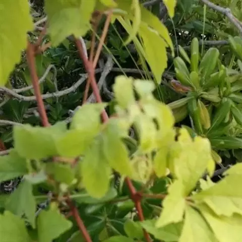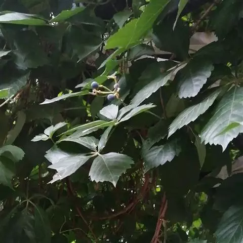 五叶地锦 Planch.)是葡萄科地锦属的木质藤本。小枝无毛;嫩芽为红或淡红色;卷须总状5-9分枝,…