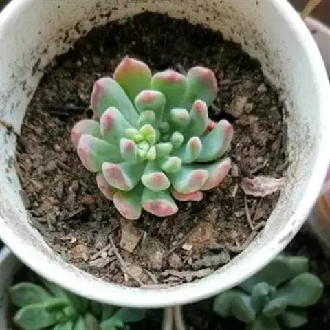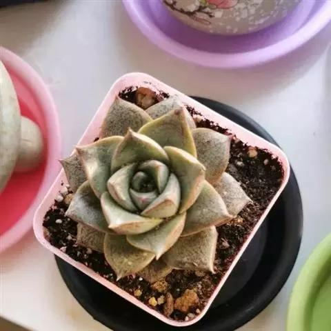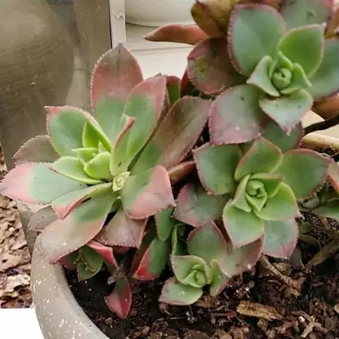 大和锦是景天科拟石莲花属的多肉植物。肉质叶排成紧密的莲座状,广卵形至散三角卵形,背面突起呈龙骨状,…