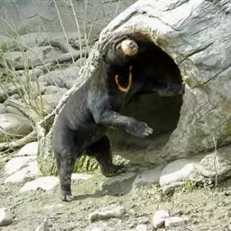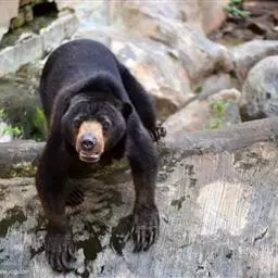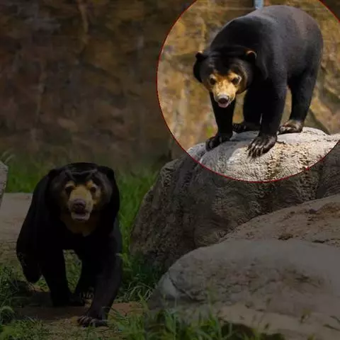马来熊,是食肉目熊科马来熊属哺乳动物。体胖颈短,眼睛和耳朵小;头部短圆;全身乌黑光滑;鼻唇周为棕黄色,…