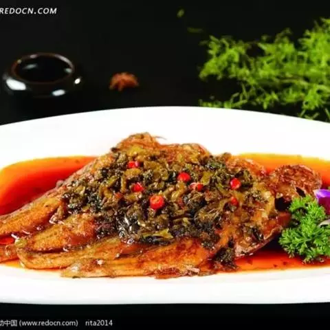 干烧小黄鱼 是由黄鱼等制作的食物,配料是葱、姜、蒜。