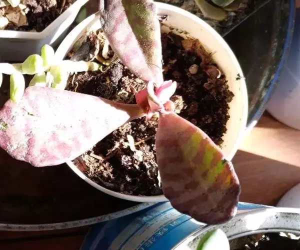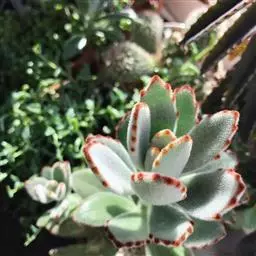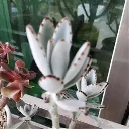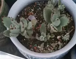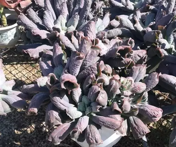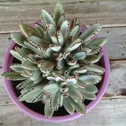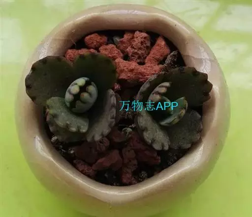 江户紫,景天科伽蓝菜属草本植物,是多年生草本花卉。花白色,但栽培中很少能见到花,常作观叶植物栽培。原产自非洲的索马里、埃塞俄比亚。