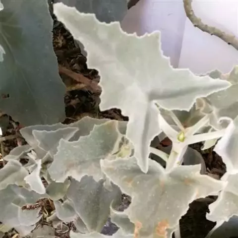 栽培中若光线不足,会造成茎叶徒长,株形松散,叶色暗淡,白粉消失,斑点颜色减退,植株缺乏生机,严重影响观赏。而夏天的强光直射,又会造成叶尖枯萎。因此,除夏季高温时要适当遮光外,其它季节都要给予充足的光照,这样培养出的植株叶片肥厚,白粉明显,紫褐色斑点清晰显著,非常漂亮。夏季高温时因植株生长缓慢,应加强通风,以免因土壤湿度过大,引起基部茎叶变黄腐烂。冬季放在室内阳光充足处,夜间不低于12℃,白天在18℃以上,可正常浇水,使植株继续生长;如果维持不了这么高的温度,节制浇水,使植株休眠,也能耐5℃的低温。春、秋季节是植株生长的旺盛期,保持土壤湿润而不积水,每月施一次腐熟的稀薄液肥或无机复合肥。每年春季换盆一次,并对植株进行修剪,以保持株形完美。盆土宜用疏松肥沃,具有良好排水、保水性能的沙质土壤。可用腐叶土2份、园土1份、粗砂或蛭石2份,另加少量腐熟的骨粉混匀后使用,因本种根系发达,应用较大的花盆栽种。新栽的植株放在光线明亮又无直射阳光处养护,不必浇太多的水,等恢复长势后再进行正常养护。