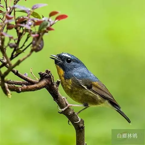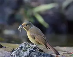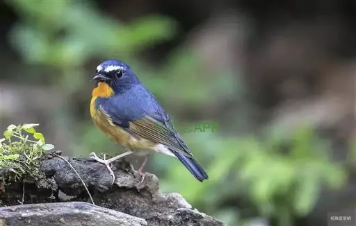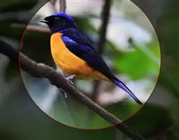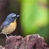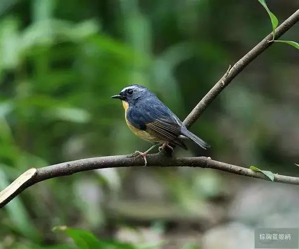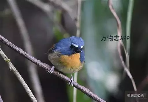 棕胸蓝姬鹟(学名:Ficedula hyperythra):属小型鸣禽,体长10-13厘米,体重6-10克,是一种体型很小的灰蓝及棕色鹟,雌雄羽色不同,雄鸟羽色艳丽,雌鸟羽色暗淡。雄鸟上体深蓝色,胸橙黄色,下腹灰白色。亚成鸟具褐色斑驳。善在空中飞捕昆虫。口裂大,喙宽阔而扁平,一般较短,上喙正中有棱嵴,先端微有缺刻;鼻孔覆羽;翅短圆,飞行灵便;腿较短,脚弱;尾楔形。