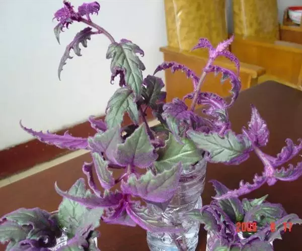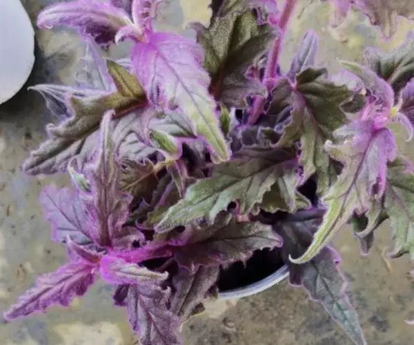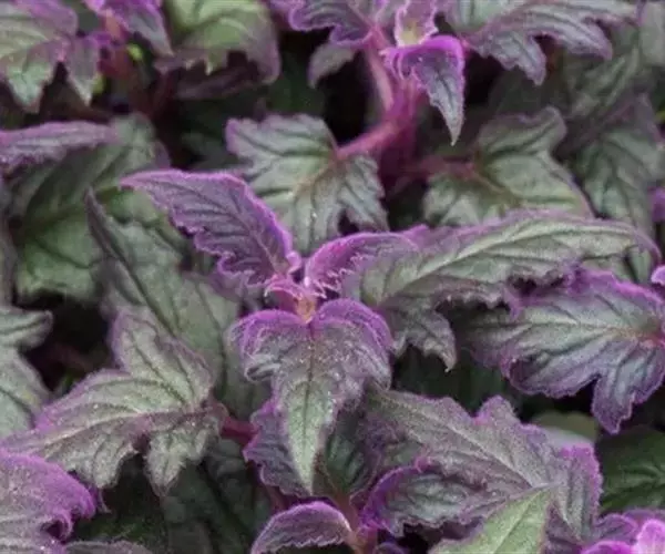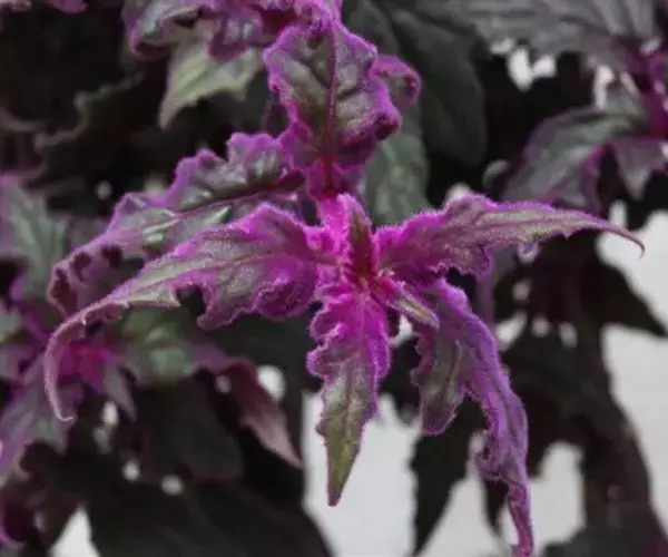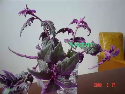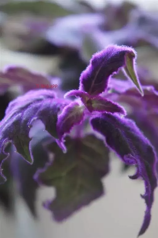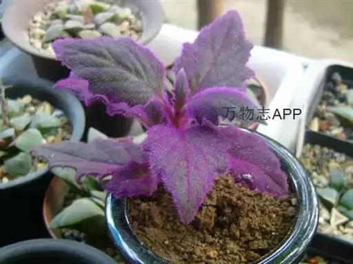 常绿多年生草本植物,多分枝,蔓生状。茎多汁,幼时直立,长大后下垂或匍匐蔓生。茎叶密被紫红色绒毛。叶对生,卵形或广椭圆形,叶长8~15厘米,宽4-5厘米;叶缘有较粗的复锯齿,叶端急尖,叶脉掌状明显。幼叶呈紫红色,长大后呈深绿色,整个植株密被紫红色的茸毛。在观叶植物中很有特色。
