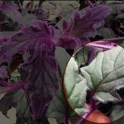 紫鹅绒(学名:Gynura aurantiana)又名:紫绒三七、天鹅绒三七等,又叫紫叶网纹草。属菊科多年生草本或亚灌木,茎粗壮多枝。叶对生,长卵形。叶缘具有较粗的重锯齿。因茎叶密披状如鹅绒的紫红色细毛而得名。紫鹅绒才其长满如天鹅绒状茸毛的叶片而著称,紫鹅绒的叶色不呈紫色而呈绿色,是光照不足引起的。