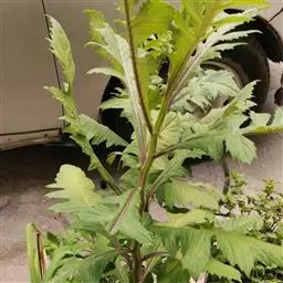 花为头状花序,腋生,呈黄色或橙黄色,类似蒲公英花,有时会散发出令人不悦的异味,所以常将花蕾摘掉;花期4~5月。