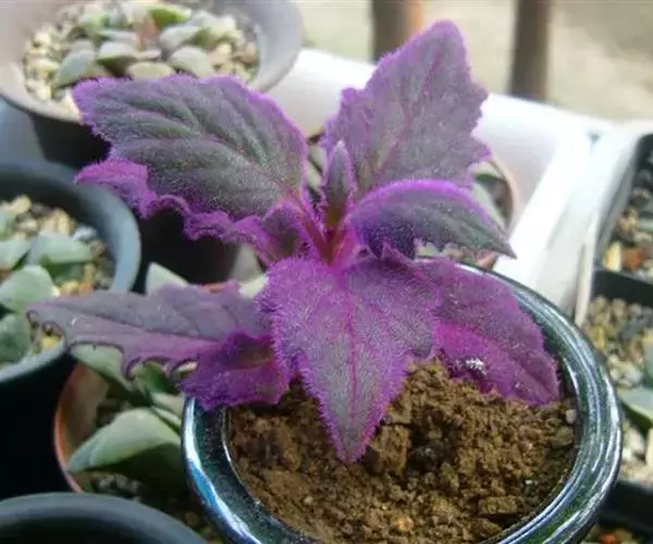 浇水:紫鹅绒在生长季节,浇水应掌握“宁湿勿干”的原则。一旦土壤干透,叶片就会萎蔫下垂,此时需立即浇水或喷水,以使其恢复生机,切忌将水喷到叶面上,以免出现烂叶。