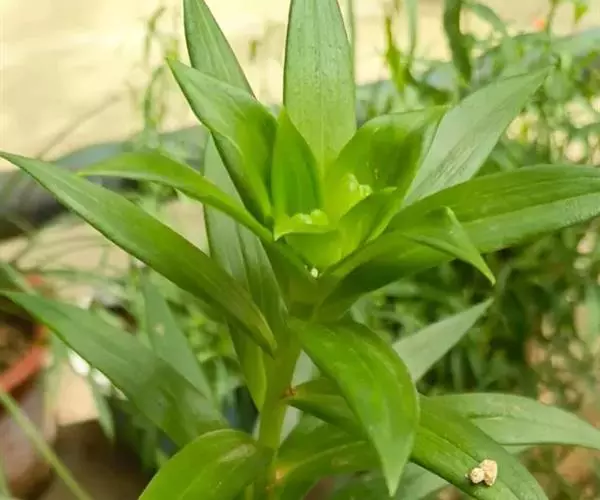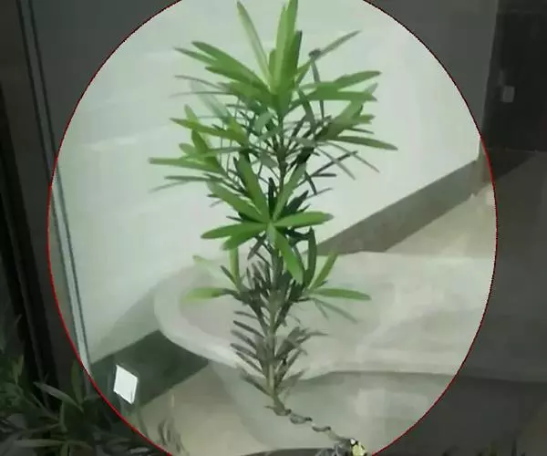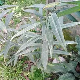 叶长披针形,似竹子;叶互生或近对生,纸质,叶长披针形,有明显3-7条主脉,具短柄,叶片浓绿色。叶长13-23厘米,宽1.8-3.2厘米,边缘白色或黄白色,叶柄长7.5-10厘米。