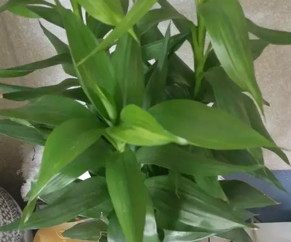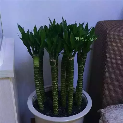 植株中间的部分有绿黄色或金黄色纵条纹,比较特别,富贵竹的植株较粗壮,叶片深绿色。