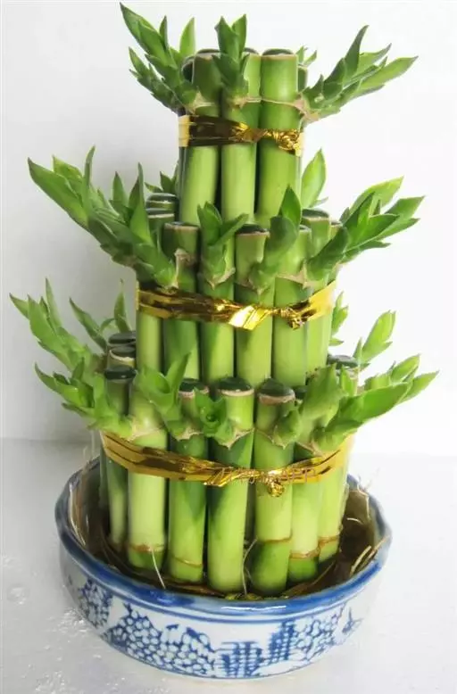 富贵竹生长强健,生命力强,繁殖力强,管理容易,根据这些特点,采用大量繁殖新竹,截取众多长短不同的茎干组成宝塔,每条茎干的上端必须带笋,保留芽眼使每层宝塔的顶端能长芽和生长枝叶,形成新的活的宝塔。