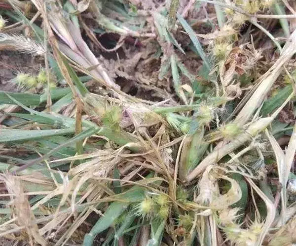 蒺藜草(学名:Cenchrus echinatus L.)一年生禾草,高15-50厘米,秆压扁,一侧具深沟,基部曲膝状或横卧地面,近地面节上生根,下部各节常具分枝。叶鞘松弛,叶舌短小,叶片线形,质地柔软,上面粗糙,无毛或疏被长柔毛。总状花序直立,刺苞球形,背部被细毛,边缘被白色纤毛,顶端具倒向糙毛,基部具一圈小刺毛,裂片直立或反曲,但彼此不相连接;内稃狭长,长与外秆近等;第二小花的外稃质地较厚,具5脉;内稃稍短。