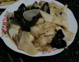 1 将鸭宰杀褪毛,去内脏洗净,放入沸水锅中稍氽取出,盛入沙锅,加清水1000克,酒10克、葱段、姜片,旺火煮沸,十五分钟后捞出。