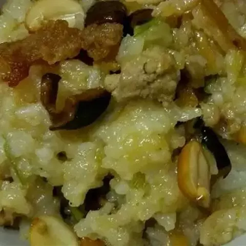 1.将花生仁放进容器中,加沸水(略放盐少许)泡10分钟后剥皮,投入六成热的油锅中炸至熟脆捞出,待冷却后将它碾成碎末。另将比目鱼干剔尽骨刺,也用(七成)热的油锅炸酥捞出,斩成细末待用。