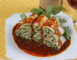 特色:色泽金黄,形状美观,沙茶酱独特的醇香,鸭块肉质软嫩芳香,吃时倍感味醇鲜美,甜辣爽口。