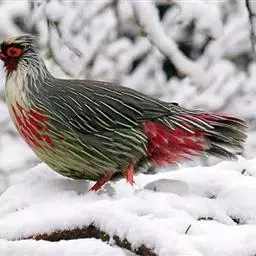 红喉山鹧鸪(学名:Arborophila rufogularis)体长18-28厘米,体重220-340克;雌鸟体长25-30厘米,体重202-300克。额深灰色,宽而长的眉纹灰白色,一直延伸到颈侧,并杂有黑色斑点。眼周裸出的皮肤鲜红色。颏和上喉黑色,下喉棕红色。胸灰色。上体纯橄榄褐色,背部没有任何斑纹,但腰上有三角形黑斑。虹膜褐色,嘴黑色,腿、脚红色。