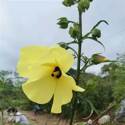 黄葵是锦葵科秋葵属的一年生或二年生草本植物。植株高1-2米,被粗毛;叶通常掌状深裂,…