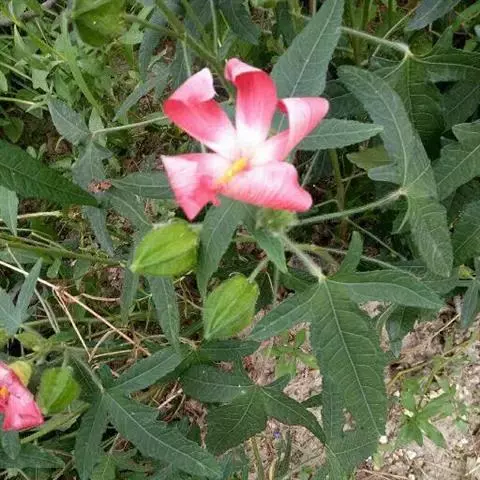 一年生草本,高1-2米;茎圆柱形,疏生散刺。叶掌状3-7裂,直径10-30厘米,裂片阔至狭,边缘具粗齿及凹缺,两面均被疏硬毛;叶柄长7-15厘米,被长硬毛;托叶线形,长7-10毫米,被疏硬毛。
