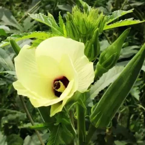 咖啡黄葵有蔬菜王之称,其嫩荚肉质柔嫩,含有由果胶及多糖组成的粘性物质,使黄秋葵有一种特殊风味,口感爽滑;一般可炒食、做汤、腌渍、罐藏等。除嫩果可食外,其叶片、芽、花也可食用。